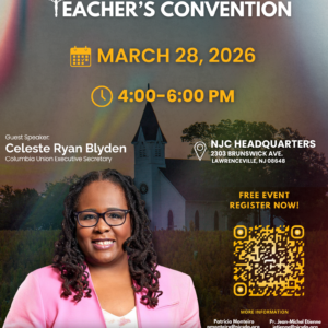 Sabbath School Teacher’s Convention Flyer for Church Presentation – Landscape Flyer for Social Media / Phone – Portrait English English Spanish Spanish 28 Mar 4:00 pm - 6:00 pm NJC Main Office 2303 Brunswick Ave, Lawrence Township, NJ 08648